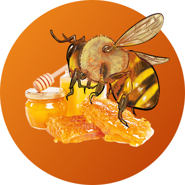 Bees collect flower nectar using the bee’s long, tube-shaped tongue and store the honey in their extra stomach